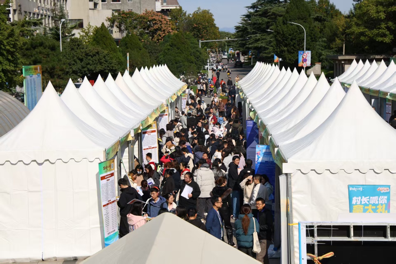 近100家用人單位在邱德拔體育館北廣場(chǎng)開(kāi)展現(xiàn)場(chǎng)招聘,崗位覆蓋人工智能、金融科技、智慧醫(yī)療等前沿領(lǐng)域,吸引眾多學(xué)生參與。