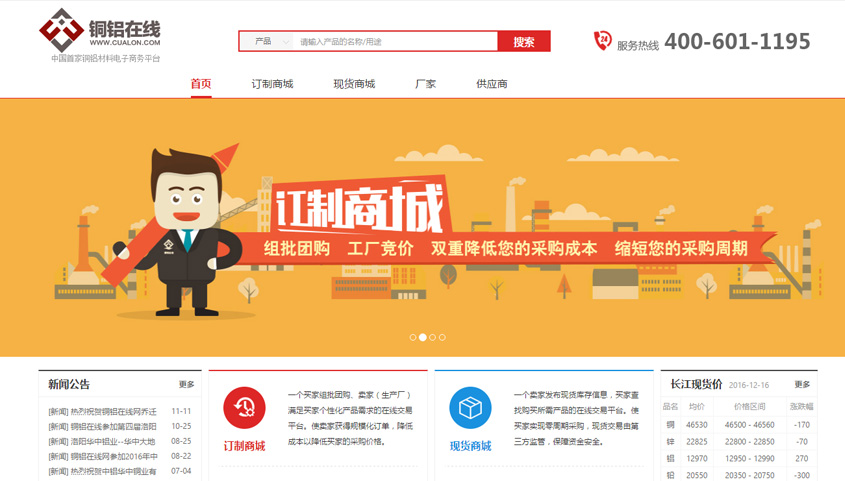 銅鋁在線為有色金屬行業(yè)的電子商務交易平臺,采用系統(tǒng)自動組批團購的方式,將需求相同的客戶組批給統(tǒng)一廠家競價,以組團形式在降低買家采購成本的同時降低工廠的生產成本。平臺同時提供現(xiàn)貨采購模式,供用戶實現(xiàn)快速線上交易。
